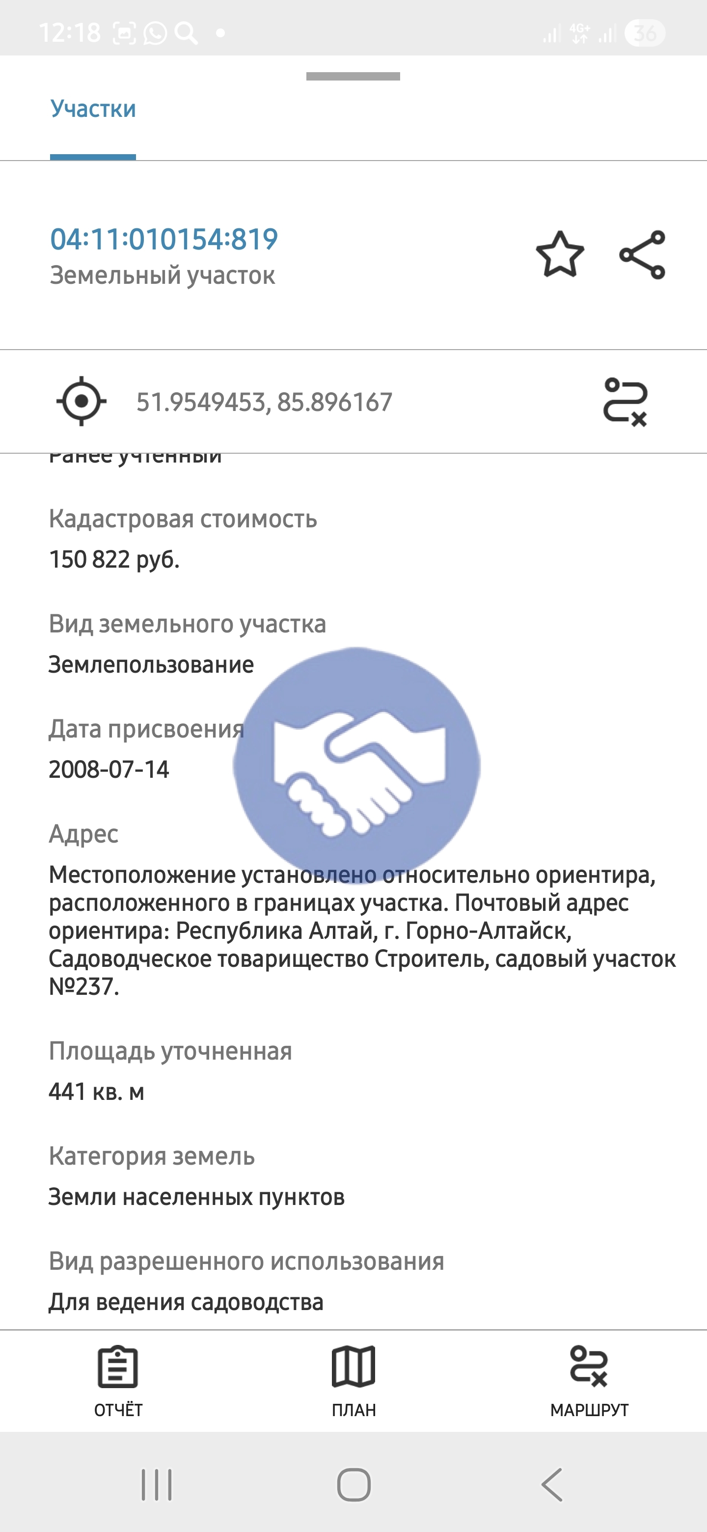 | Категория земли | Садоводство |
